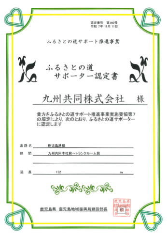 2025年12月 “SDGs取り組み”~ふるさとの道サポーター認定(鹿児島県)